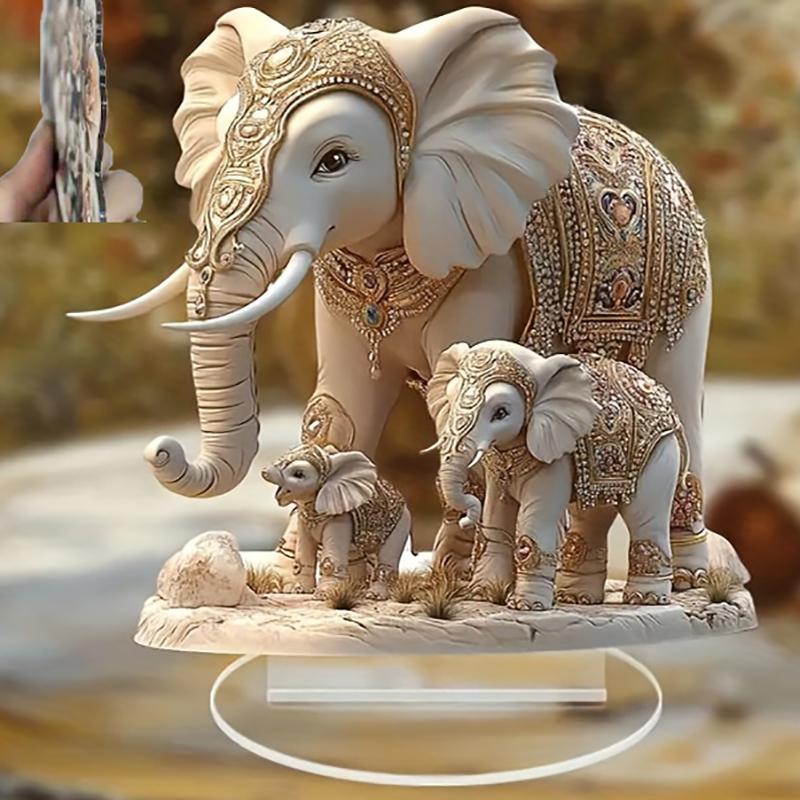 1 Stück Weiße Elefantenfamilie 2D Flache Acrylfigur Zuhause Büro Café Zimmer Studio Vitrine Tischornament Desktop Deko-Set