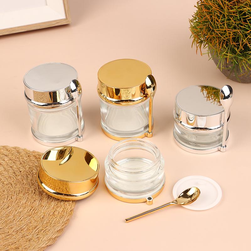Electroplating Empty Cream Jar Refillable Lotion Bottle With Spoon 30/50/80/100g Travel Face Cream Cosmetic Cotton Pad Container