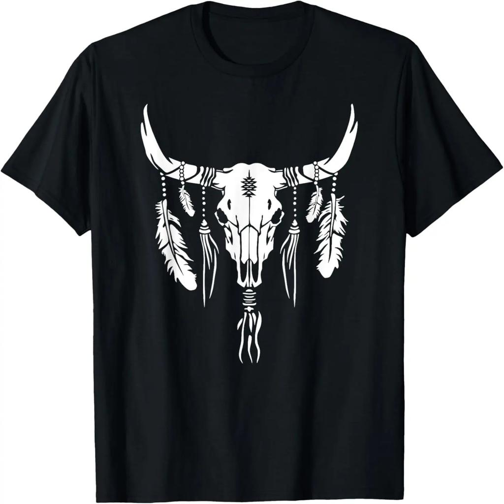 Boho Longhorn Stierschädel Design Kuhschädel und Federn Kunst T-Shirt