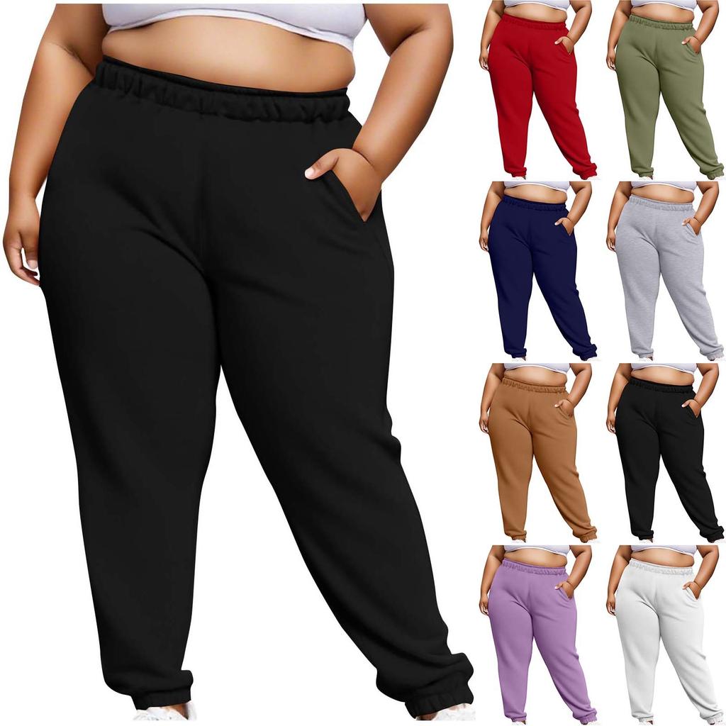 Damenmode Übergröße Einfarbige Hose mit elastischem Bund, Umschlagbeinen und Seitentaschen