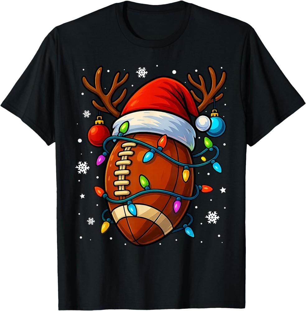 Christmas Football Santa Hat Lights Xmas Pajamas Adult Kid T-Shirt