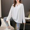 Frühlings- und Sommer-Lässiges Allround-Basics-Shirt, Extra Große Größe, Rippen-T-Shirt, Design-Akzente, V-Ausschnitt, Bauchbedeckend, Dünnes Oberteil, Damen