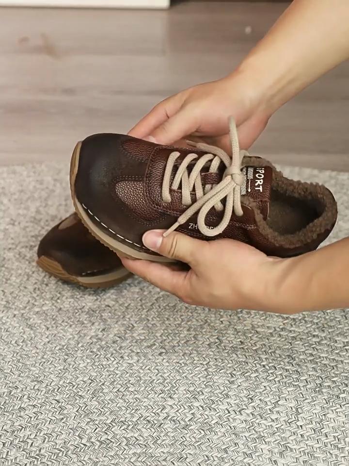 Johnature Echtes Leder Plüsch Warme Damen Schuhe Lässig Weich besohlt Sportschuhe Vielseitige Schnürschuhe Baumwollschuhe