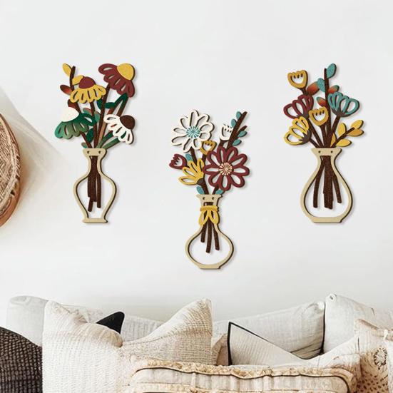 Hölzerne Blumenvase Wandkunst Rustikales Bauernhaus Holz Blumen Wanddeko Minimalistisch Boho Pflanzen Blumenstrauß Deko für Wohnzimmer Badezimmer Schlafzimmer