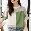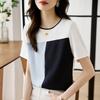 Französischer Stil Leichter Luxus Sommer Damen Rundhals Patchwork Kontrastfarbe Maulbeerseide Mode Kurzarm T-Shirt Tops