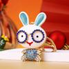 Creative Colorful Rabbit Keychain With Dazzling Rhinestones Stylish Keyring For Women