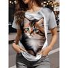 Damen T-Shirt Katzen-Print Sommer Rundhals Kurzarm Mode Lässig Übergroße T-Shirts