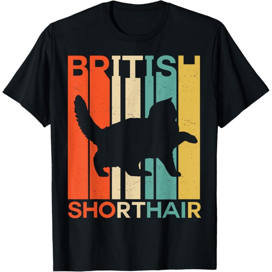 Retro Vintage Britisch Kurzhaar Katze Silhouette Britische Männer Frauen T-Shirt