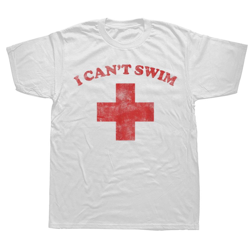Lustiges Ich kann nicht schwimmen Rettungsschwimmer Grafik T-Shirts T-Shirt Herren Damenmode Lässig Übergroß 100% Baumwolle Vatertags T-Shirt