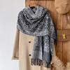 Fashion Winter Cashmere Shawl For Women - Tasseled Vintage Floral Printed Oil Painting Style Pashmina Thick Scarf & Poncho