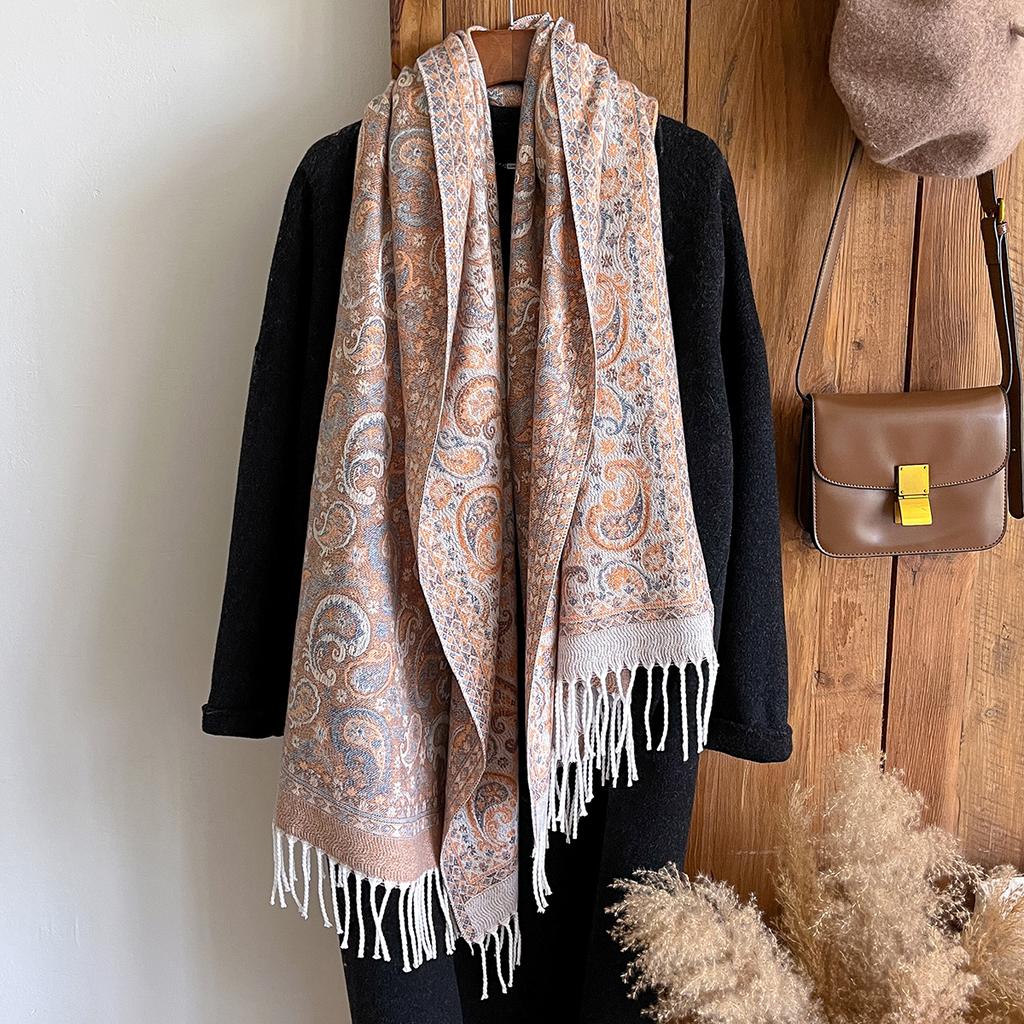 Modischer Warmer Kaschmirschal für den Winter - Damen-Fransen-Vintage-Blumen-Ölgemälde-Druck-Pashmina-Dicker Schal & Poncho