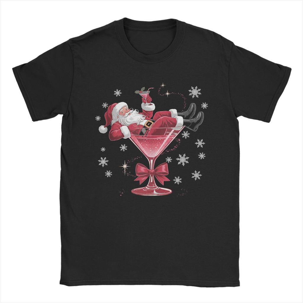 Santa's Hot Mess Christmas Martini Funny Party Cotton T Shirt For Men Summer T-Shirts O Neck Hippie Tees Plus Size Cheap Tops