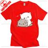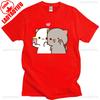 Pfirsich Katze Goma und Mochi Selfie T-Shirt Sommer Baumwolle Kurzarm T-Shirts Niedlicher Druck T-Shirt Mode Harajuku Lustige Partner Tops