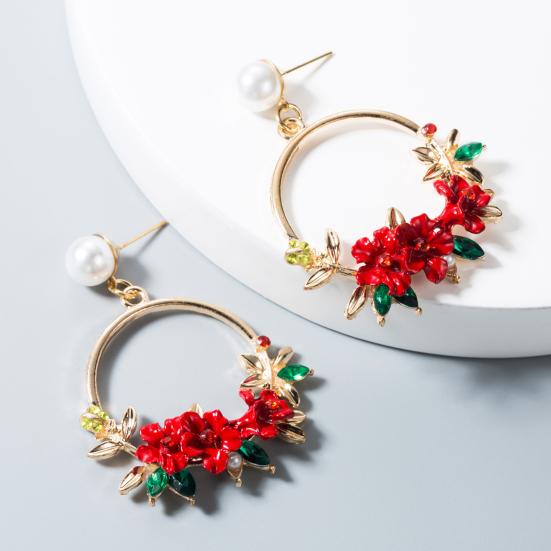 1 Paar Hängeohrringe Runder Kreis Temperament Glänzender Strassbesatz Dekorative Geschenke Frauen Niedlicher Blumenanhänger Stecker