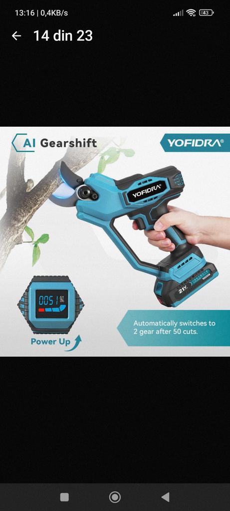 Yofidra 60mm KI Zahnräder Steuerung Bürstenlose Elektrische Astschere Akku Baum Bonsai Beschneidung Elektrische Schere Für Makita 21V Akku