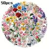 50pcs Vibrant Flower Stickers Assorted Floral Decal Reusable Vinyl Stickers Suitable for DIY Phone Cases Suitcases and Notebooks