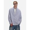 Men's American Retro Letter Print Striped Long-Sleeved Shirt for Men and Women, Blue Couple's Lazy Casual Sun Protection Shirt