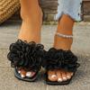 Mode Outdoor Strand Hausschuhe Damen 2025 Damenschuhe im Angebot Offene Zehen Damen Hausschuhe Quadratische Zehen Flach Floral Übergröße Sandalen