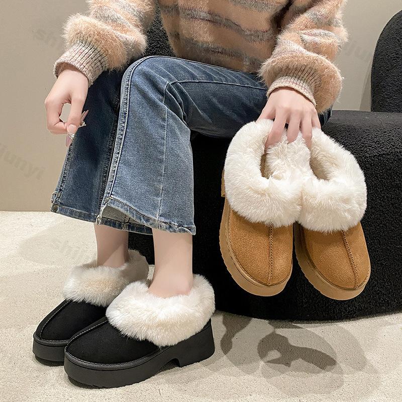Retro Flauschige Lässige Dicke Sohle Baumwollstiefel für Damen Winter Warm Weich Bequem Mode Vielseitig Plüsch Klobige Schneestiefel