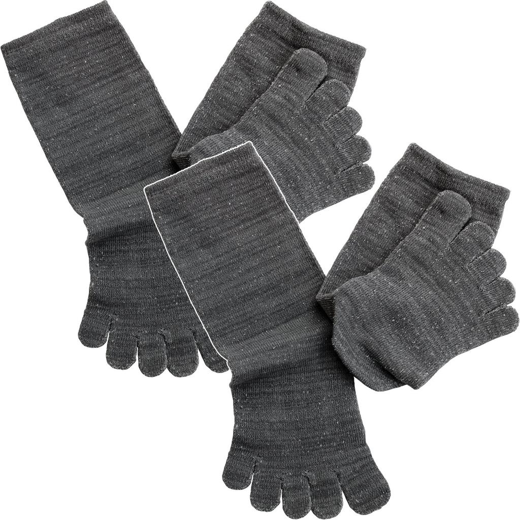 Hiorie Silk Cotton Set of Heather Charcoal Gray Japanese-Made Anti-Cold Socks, Inner, Outer, Mid-Length, Five-Toe, 2,