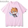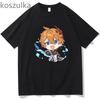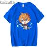 Tartaglia T-Shirt Genshin Impact – Chibi Childe Paar, 100 % Baumwolle, süßer Cartoon-Druck, Damen-Shirt, Sommer, gemütlich, weich, lässige Tops