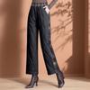 Fashion Women Winter Warm High Waist Cotton Padded Pants Plaid Patchwork Wide Leg Fleece Lined Trousers