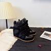 Echtleder-Stil Klettverschluss Unsichtbare Innenhöhe Erhöhende Damen Schuhe Kurze Stiefel Keilabsatz Farblich passend Sportlich Lässig High-Top Schuhe