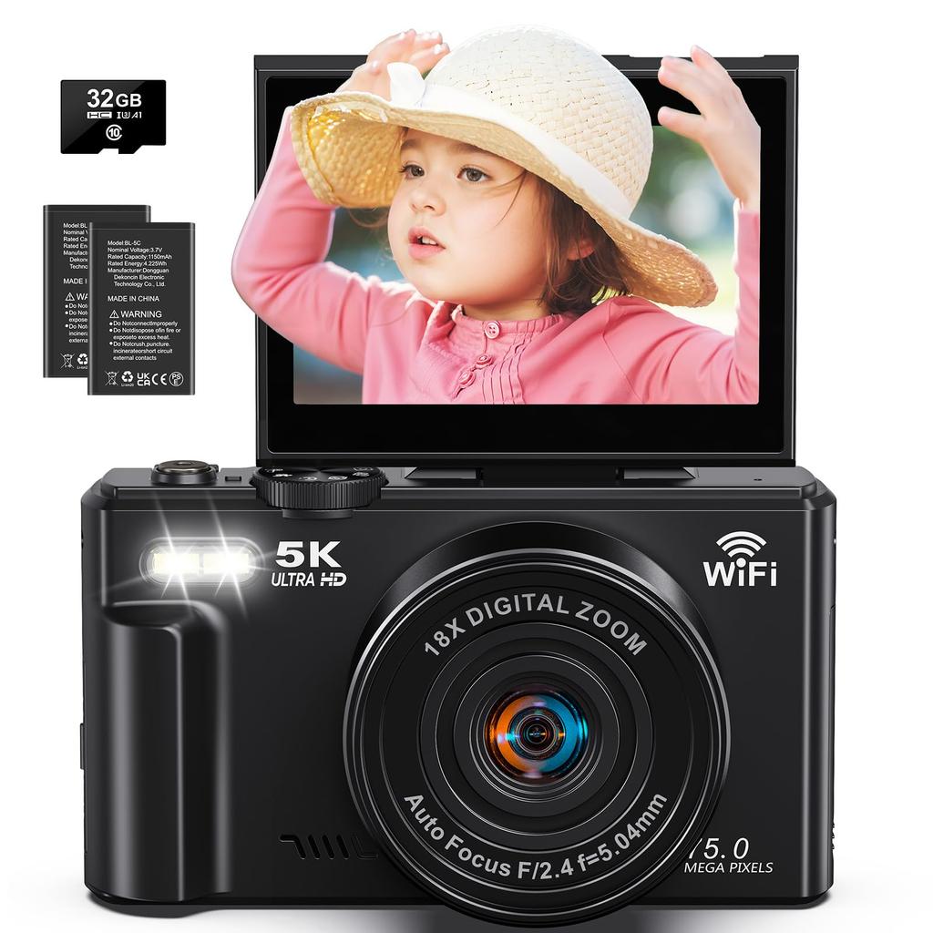 [Clear and Detailed 75MP & 5K Digital Camera] This digital camera features a high-resolution CMOS sensor, allowing you to capture 64MP photos and 5K-resolution videos. 75MP ensures richer, more realistic images, allowing for greater detail and a stunning visual experience. Whether you're shooting dynamic video or still photos, 5K resolution delivers stunning visuals. This 75MP and 5K-resolution digital camera is perfect for beginners or those who want to share videos on online platforms like YouTube and TikTok.