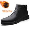 Herren-Ankle-Boots aus echtem Leder, superwarm, Business-Stiefel, Krokodilmuster, warme Plüsch-Fütterung, Winterstiefel, Luxusmarke, Herrenschuhe