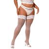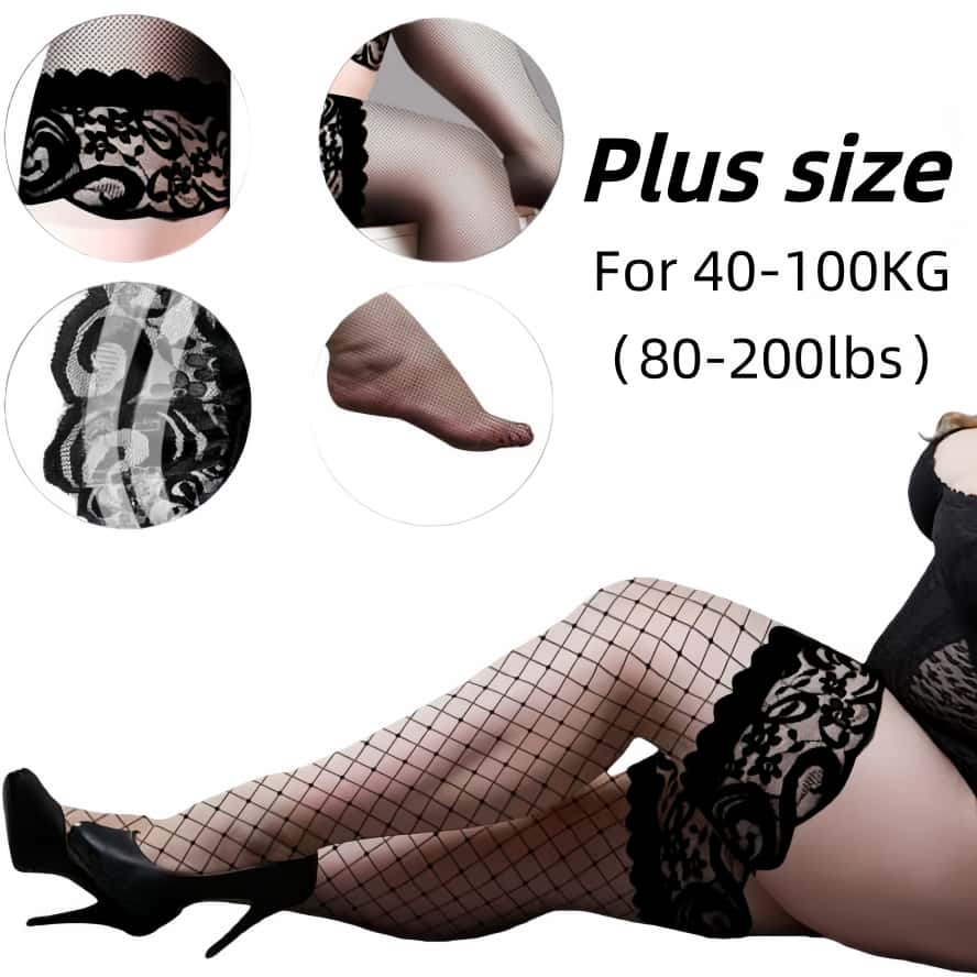 Übergröße Sexy Lolita Mädchen Kniehoch Spitzenoberteil Anti-Rutsch Fischernetz Lange Socken Oberschenkelhoch Netzstrümpfe für Damen XXL Schwarz Weiß