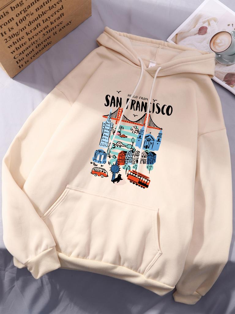 Hallo aus San Francisco Druck Hoodies Damen Street Locker Kapuzenpullover Basics Sportliches Sweatshirt Winter Fleece Warm Damen Sportbekleidung