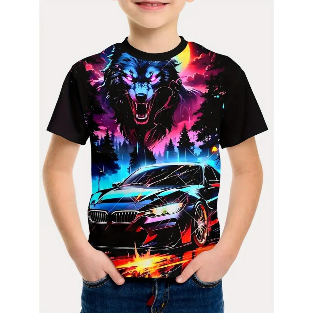Boys' T-shirts with racing prints, fashionable children's T-shirts, short sleeved children's T-shirts, casual baby clothing for boys