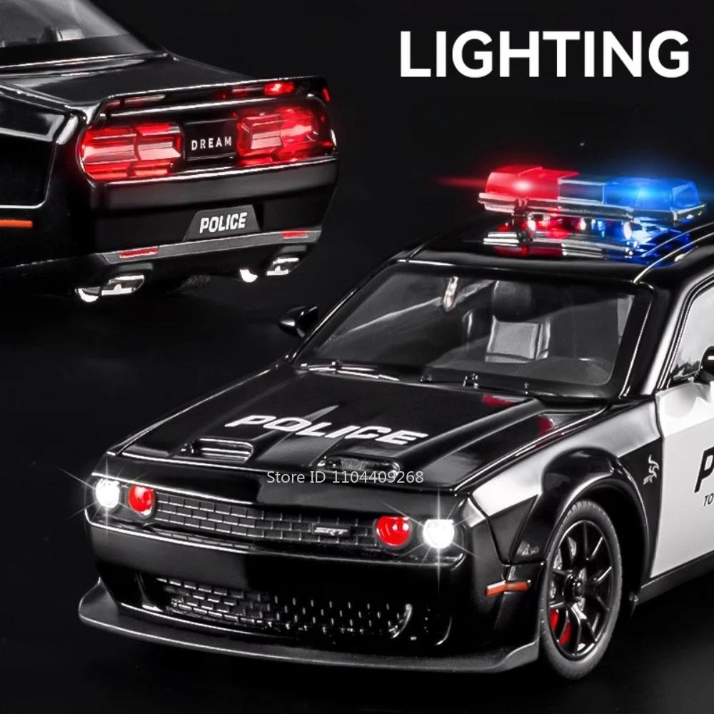 1:Maßstab 24 Challenger SRT Hellcat Polizeiauto Charger 1970 Modell Spielzeug Rückzugsantrieb Licht Musik Miniaturfahrzeug für Kinder Sammlung