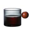 Bunte Glas-Kaffeetassen mit Holzkugelgriff Wiederverwendbares Trinkteeglas für Tee Kaffee Latte