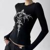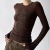 Amerikanisches Retro-Print Langarm-T-Shirt für Damen Samt Herbst und Winter Slim Bottoming Shirt Trendiges Oberteil