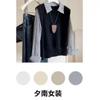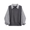 Autumn Winter Korean Commuting Splicing Striped Short Top Polo Collar Fake Two-piece Long-sleeved Sweater for Women