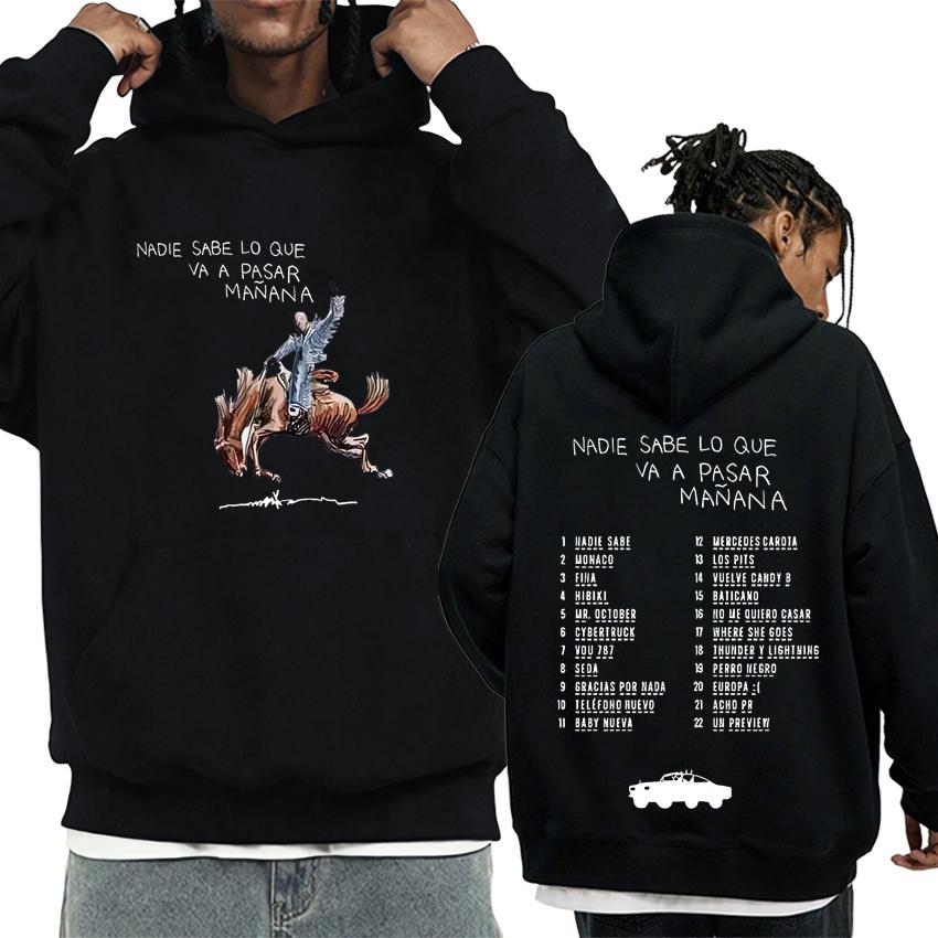 Bad Bunny Hoodies Niemand weiß, was morgen passieren wird Sweatshirt Herren Damen Lässige Mode Musik-Hoodie Unisex Vintage Pullover