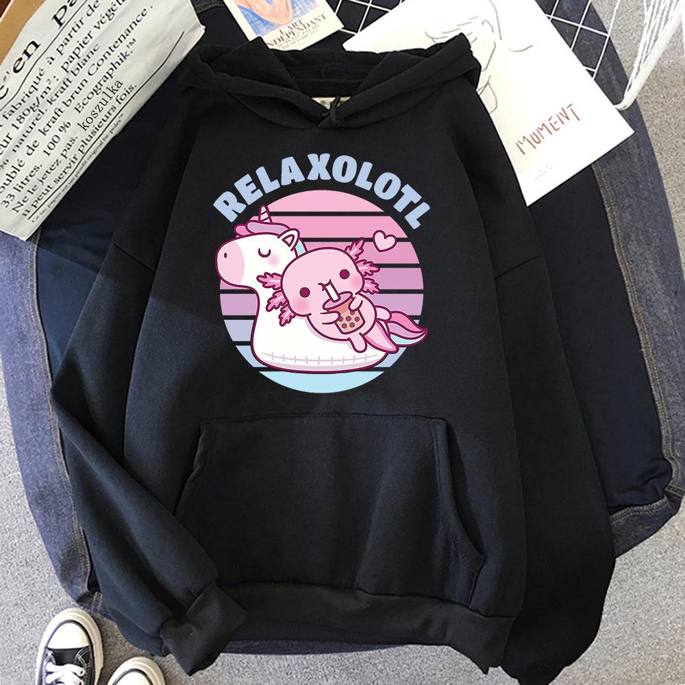Cute Axolotl Chilling on Unicorn Pool Float Relaxolotl Hoodie Women Aesthetic Hoodies Unisex Autumn Winter Pullovers Sweatshirts