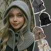 Strickmütze Einfarbig Knopfverschluss Kordelzug Kapuzenschal Damen Winter Warm Winddicht Elastisch Thermomütze
