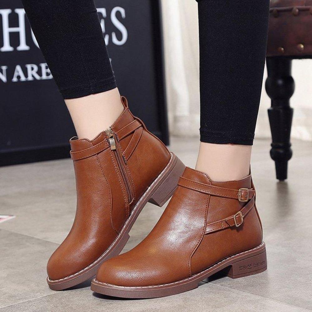 Neue Damenstiefel Niedriger Absatz Gürtelschnalle Kurzschaftstiefel Damen Groß Damenstiefel Herbst/Winter