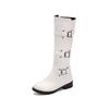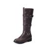 Klassische Schnallenriemen Kniehohe Stiefel für Damen Herbst Winter Lässig Niedrige Absätze Hoher Reitstiefel Runde Zehenpartie Damenschuhe WSH5388
