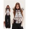 UNIFREE Retro Fair Isle Jacquard Hooded Sweater with Faux Fur Collar