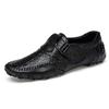 XiaGuoCai Übergröße 47 Schwarz Krokodil Herren Slipper Echtes Leder Atmungsaktiv Herren Flats Slipper Freizeitschuhe L49 35