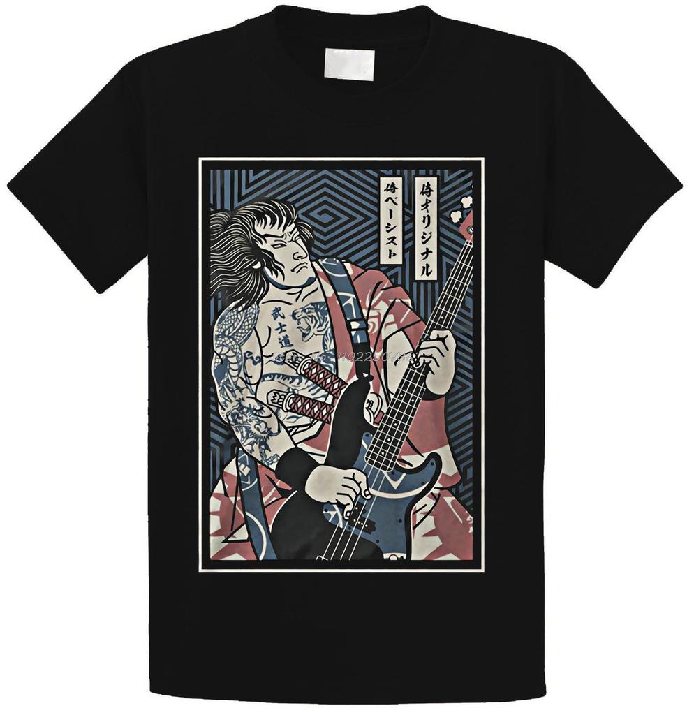 Japanische Samurai Gitarren Grafik T-Shirts Schwarz Mode Herren Kurzarm T-Shirt Männliches Shirt Fitness T-Shirts Sommer Übergroßes T-Shirt