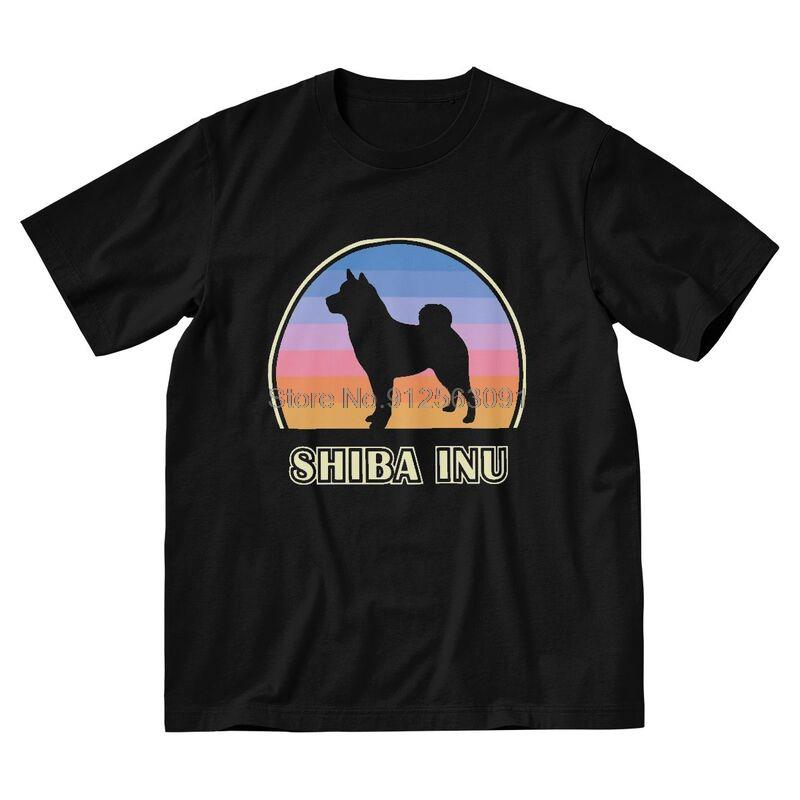 Shiba Inu Vintage Sonnenuntergang Hunde T-Shirt Herren Neuheit T-Shirt Kurzarm T-Shirt Baumwoll-Tees Top Geschenk Übergröße T-Shirt