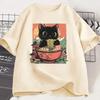 T-Shirt mit schwarzer Katze für Damen, lässiges Kurzarm-T-Shirt Harajuku für Damen, Tops ästhetische Kleidung