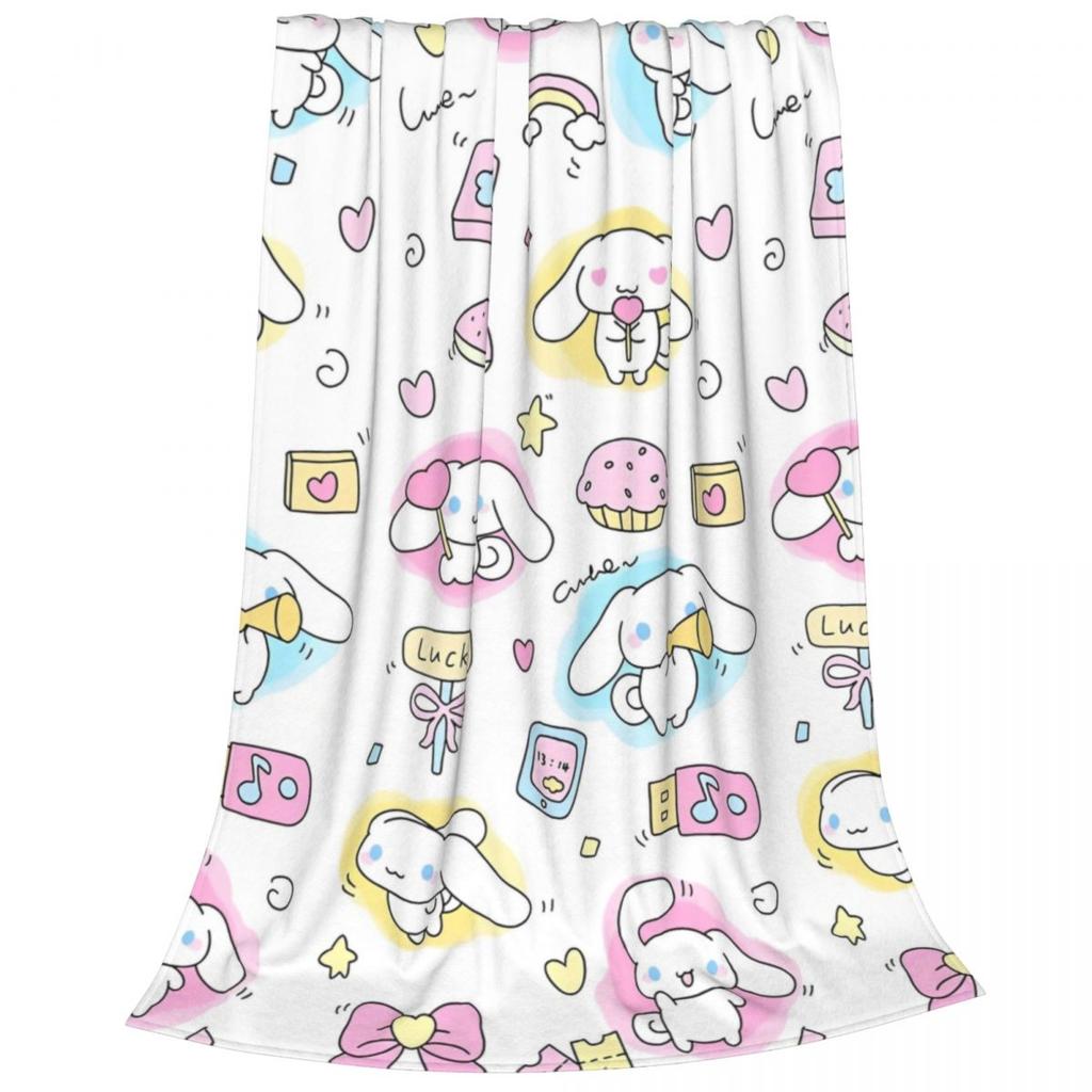 Kawaii Cinnamoroll Glücksdecke Niedliche Cartoon Flanel Tolle Warme Überwurfdecke für Zuhause Restaurant Sommer