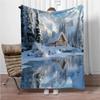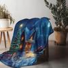 Zeitgenössische Flanellfleece-Überwurfdecke – Digitaldruck Winterszene mit verschneitem Dorf und Mond – Weich Warm