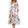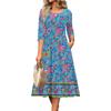 3/4-Ärmel Damenkleid Lässig Fließend A-Linie Midi T-Shirt Kleider mit Taschen Rundhalsausschnitt Urlaub Boho Strand Sommerkleid