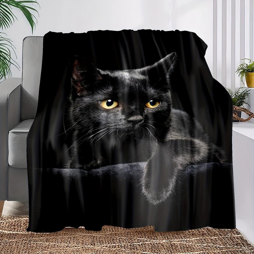 Schwarze Katze Druck Flanelldecke Weicher Warmer Überwurf für Couch Sofa Büro Bett Camping Reisen Gemütliche Nickerchen Decke